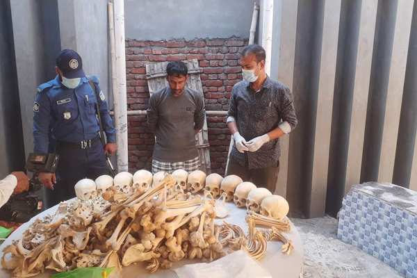 বাসা থেকে ১২টি মাথার খুলি, দুই বস্তা হাড় উদ্ধার