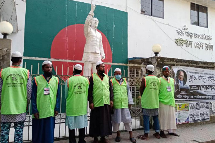 বঙ্গবন্ধুর ভাস্কর্য পাহারায় বরিশাল ইসলামী আন্দোলন’র কর্মিরা