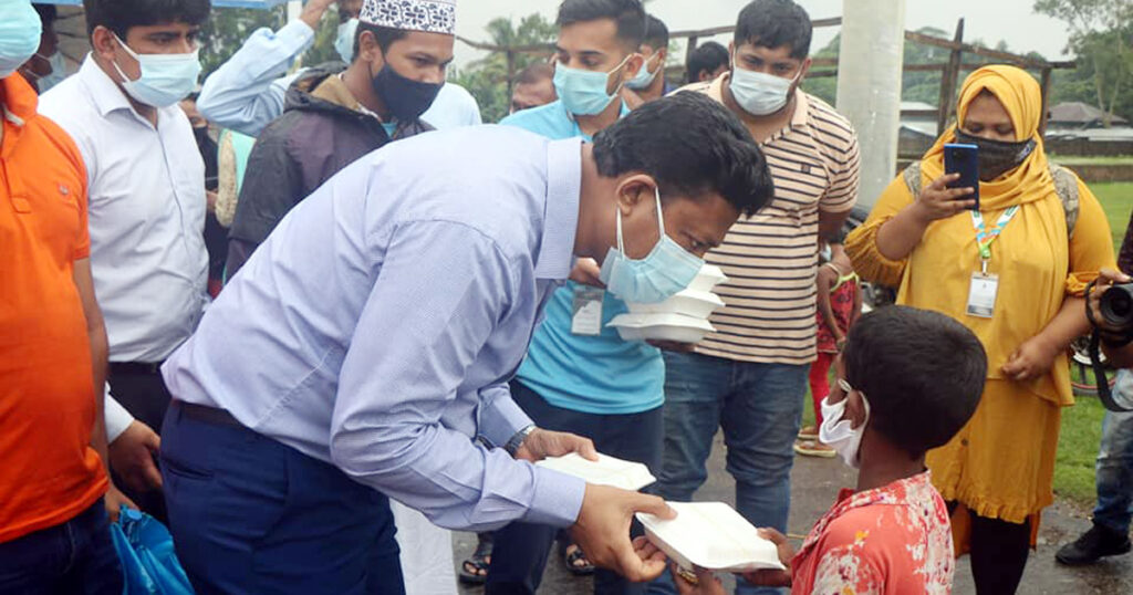 স্বেচ্ছাসেবী সংগঠনের উদ্যোগে সুবিধা বঞ্চিত শিশুদের মাঝে খাবার বিতরণ