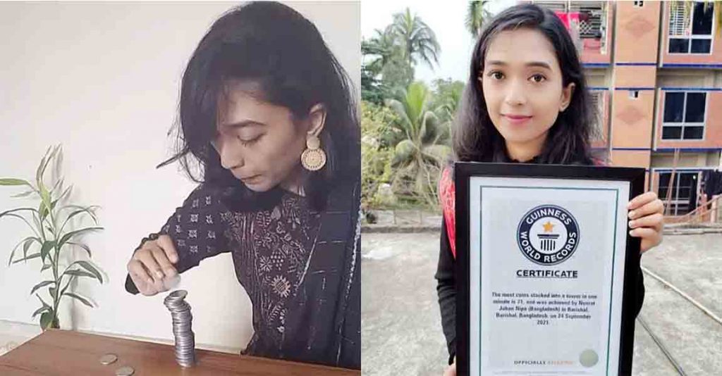 এক মিনিটে ৭১ কয়েন রেখে গিনেজ বুকে নিপার বিশ্ব রেকর্ড