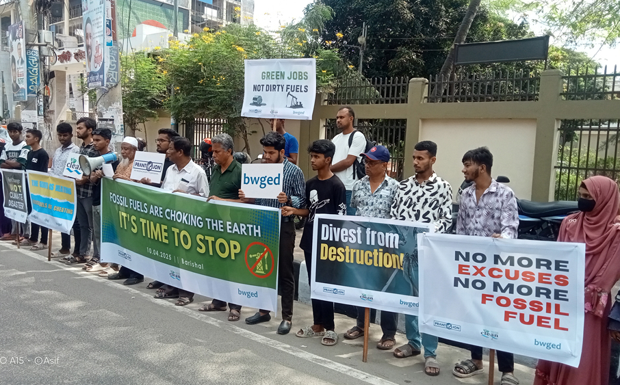জীবাশ্ম জ্বালানিতে বিনিয়োগ বন্ধের দাবিতে বরিশালে মানববন্ধন