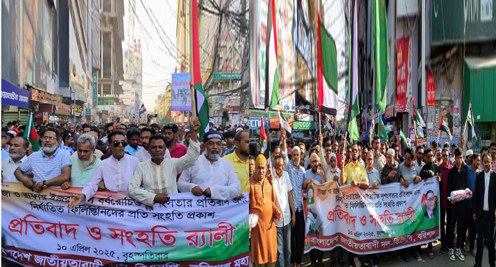 স্টাফ রিপোর্টার // গাজা ও রাফায় ইজরায়েলি বর্বরোচিত নৃশংসতার প্রতিবাদ এবং নির্যাতিত ফিলিস্তিনিদের প্রতি সংহতি প্রকাশ করে বরিশাল মহানগর বিএনপির উদ্যেগে প্রতিবাদ ও সংহতি র্যালী অনুষ্ঠিত হয়েছে। সদর রোডস্থ বিএনপি দরীয় কার্যলয় থেকে বিকেল সাড়ে ৪ টায় মহানগর বিএনপির আহবায়ক মনিরুজ্জামান খান ফারুক ও সদস্য সচিব জিয়া উদ্দিন সিকদার জিয়ার নেতৃত্বে ওই কমিটির যুগ্ম আহবায়ক […]