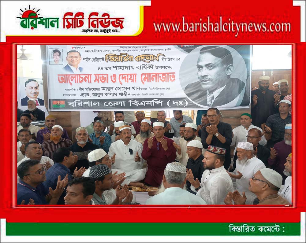শহীদ জিয়ার ৪৪ তম শাহাদাৎ বার্ষিকীতে বরিশাল জেলা বিএনপির দোয়া অনুষ্ঠিত