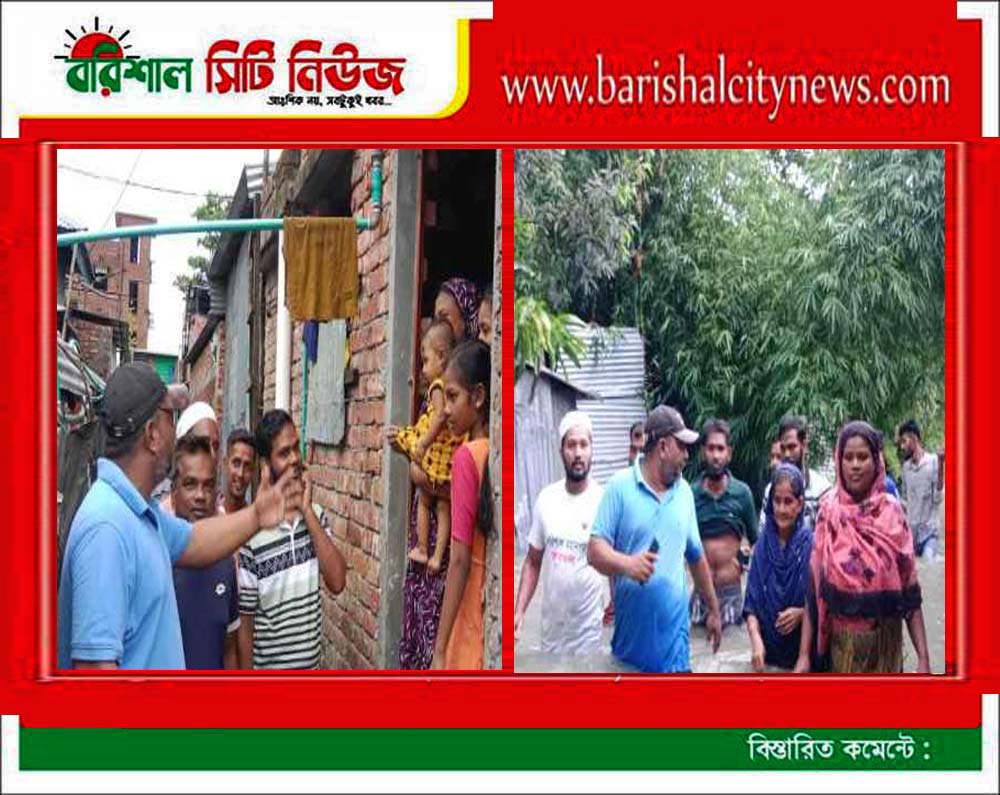 বরিশালে বন্যায় প্লাবিত মানুষের পাশে যুবদল নেতা রাজু