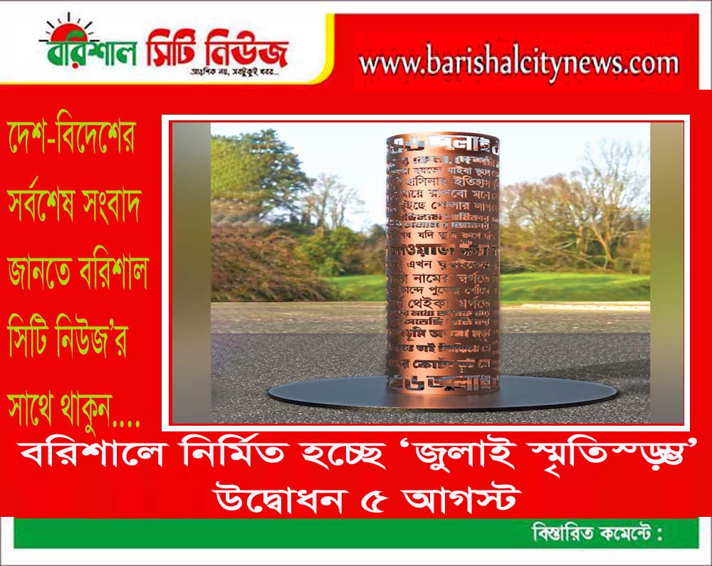 বরিশালে নির্মিত হচ্ছে ‘জুলাই স্মৃতিস্তম্ভ’ উদ্বোধন ৫ আগস্ট