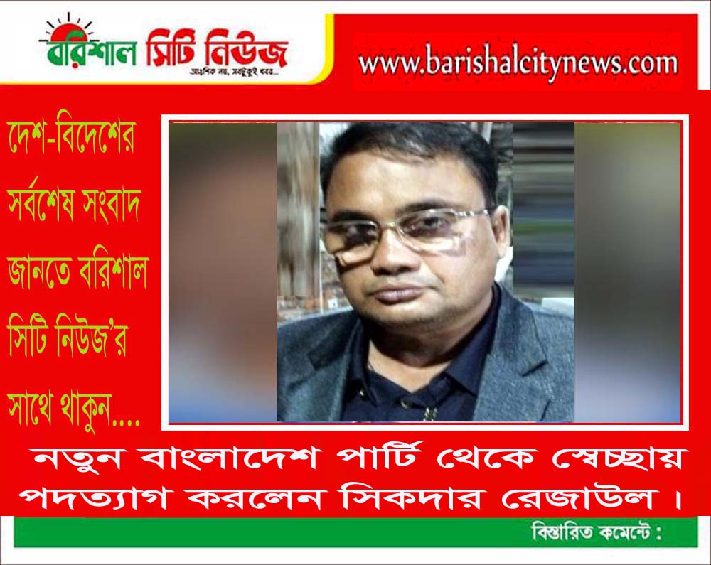 নিজস্ব প্রতিবেদক >> নতুন বাংলাদেশ পার্টি (এনবিপি)কেন্দ্রীয় কমিটির অতিরিক্ত রাজনৈতিক সম্পাদক পদ থেকে স্বেচ্ছায় পদত্যাগ করলেন বরিশালের গৌরনদী উপজেলার কৃতি সন্তান সিকদার সফিকুর রহমান রেজাউল। (এনবিপি)চেয়ারম্যান মেজর (অব:)সিকদার আশিকুর রহমান সাক্ষরিত এক পত্রে সফিকুর রহমান রেজাউলকে অতিরিক্ত রাজনৈতিক সম্পাদক হিসেবে মনোনীত পদায়ন করা হয়।পত্রে উল্লখ করা হয়েছে যে আপনি দলের নিবেদিত প্রান নেতা। দলের প্রতি […]