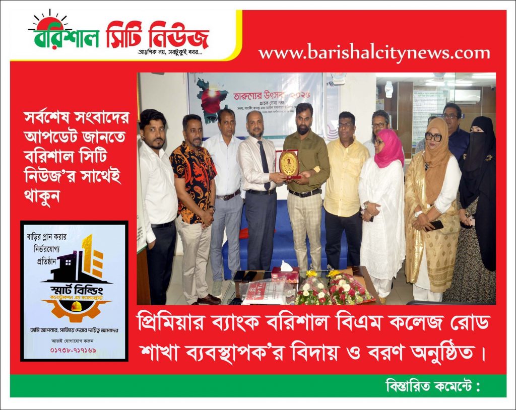 প্রিমিয়ার ব্যাংক বরিশাল বিএম কলেজ রোড শাখা ব্যবস্থাপক’র বিদায় ও বরণ অনুষ্ঠিত।