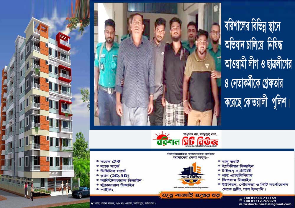 বরিশালে নিষিদ্ধ আ’লীগের ৪ নেতাকর্মী গ্রেফতার