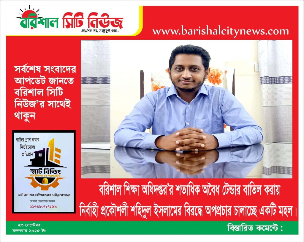 শিক্ষা অধিদপ্তর’র শতাধিক অবৈধ টেন্ডার বাতিল করায় নির্বাহী প্রকৌশলী শহিদুলের বিরুদ্ধে অপপ্রচার।