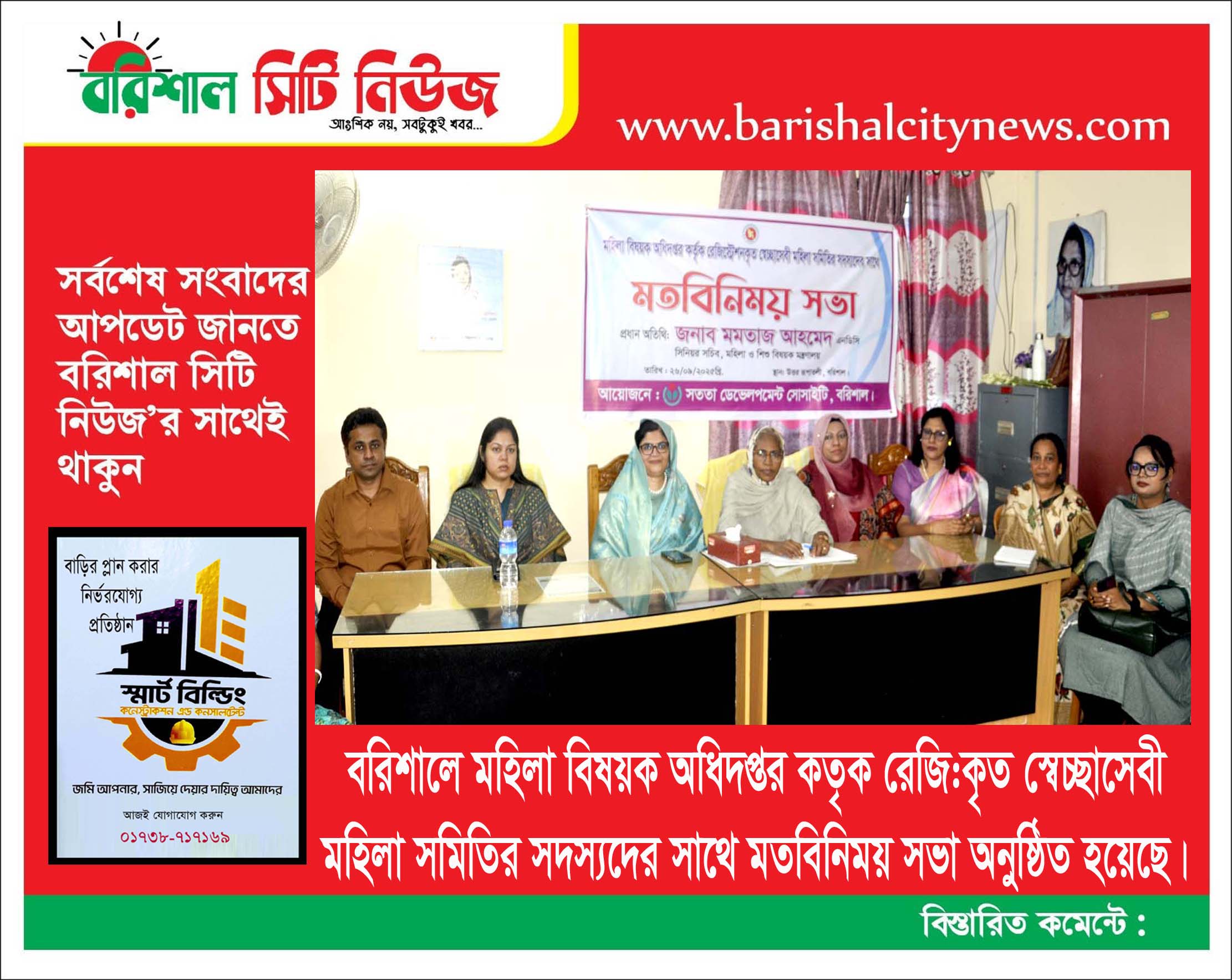 নিজস্ব প্রতিবেদক ।। বরিশালে মহিলা বিষয়ক অধিদপ্তর কতৃক রেজি:কৃত স্বেচ্ছাসেবী মহিলা সমিতির সদস্যদের সাথে মতবিনিময় সভা অনুষ্ঠিত হয়েছে।
