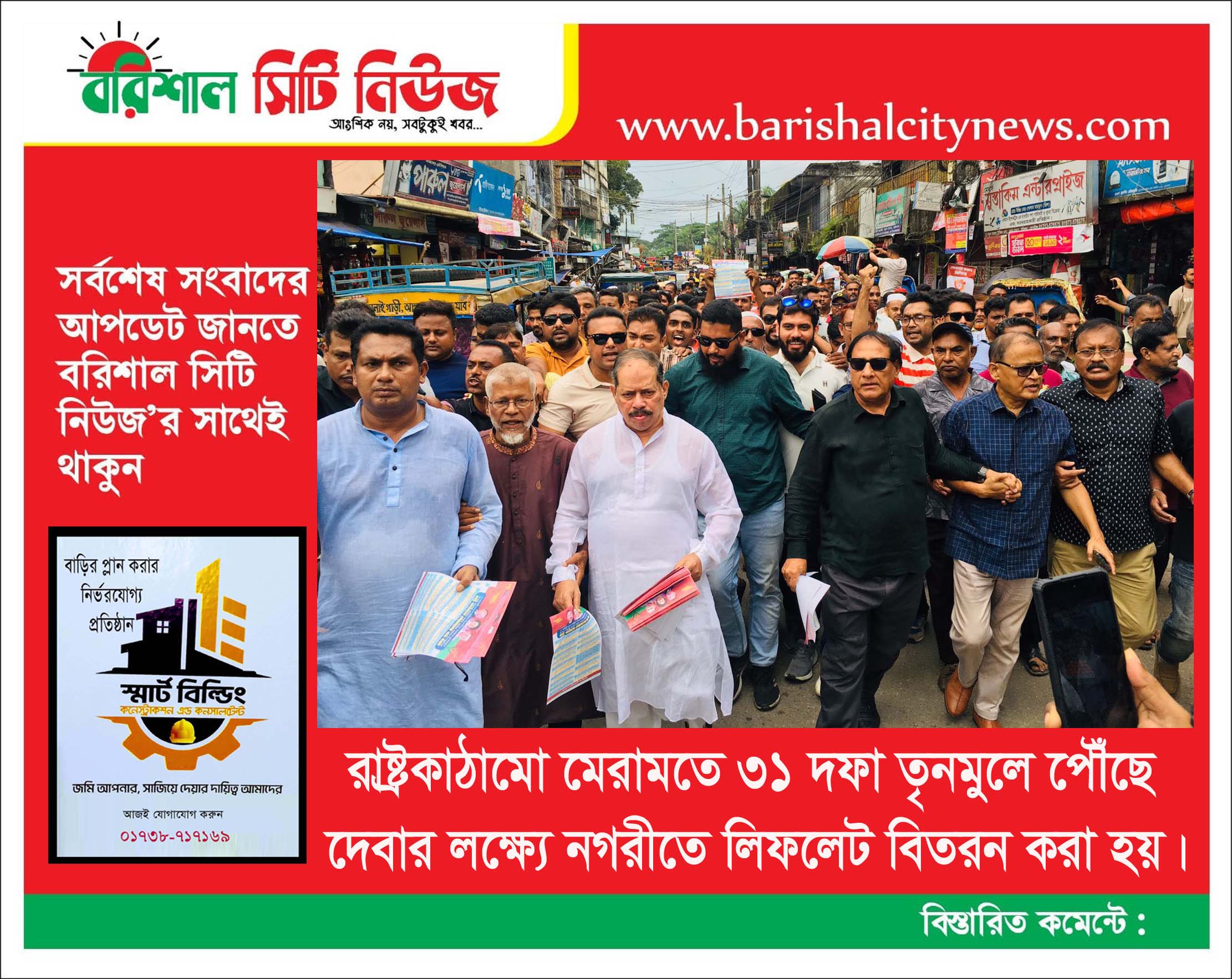 আজ মঙ্গলবার ৭ অক্টেবর সকালে নগরীর বিভিন্ন সড়কে ৩১ দফা তৃনমুলে পৌঁছে দেবার লক্ষ্যে কেন্দীয় কর্ম সুচির অংশ হিসেবে লিফলেট বিতরণ করা হযয়েছে।