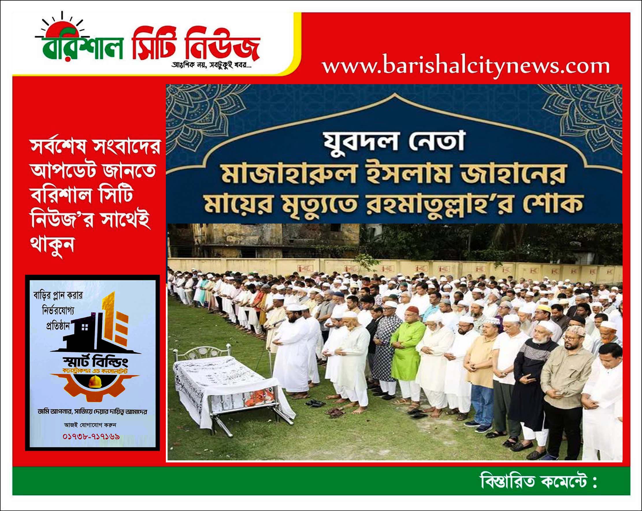 বরিশাল মহানগর যুবদলের সাবেক ভারপ্রাপ্ত সাধারণ সম্পাদক অ্যাড.মাজহারুল ইসলাম জাহান এর মমতাময়ী মাতার জানাজা নামাজ ২০ এপ্রিল,সোমবার বাদ আসর,নগরীর আমানতগঞ্জ টি.বি হাসপাতাল মাঠে আদায় করা হয়।