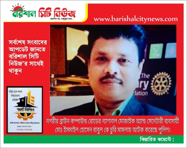 নগরীর ব্রাউন কম্পাউন্ড রোডের ব্যবসায়ী চুরি মামলায় আটক।