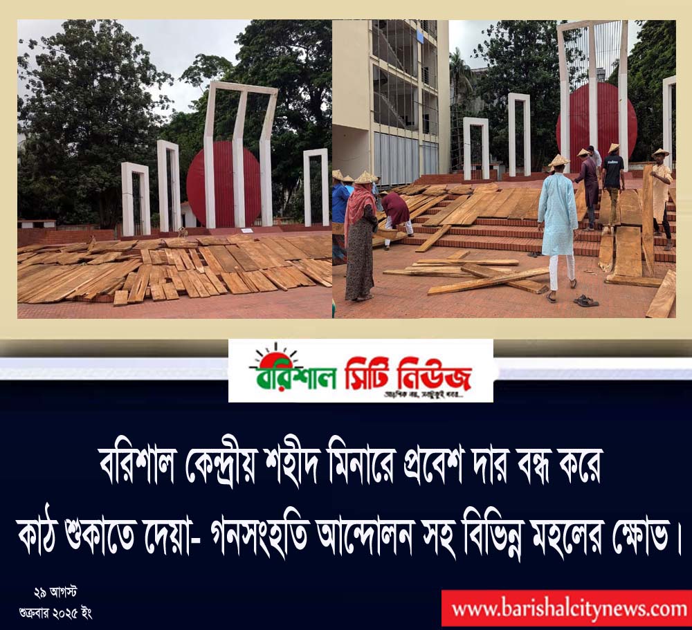 বরিশালে কেন্দ্রীয় শহীদ মিনারের ফটকে তালা দেখে ক্ষোভ