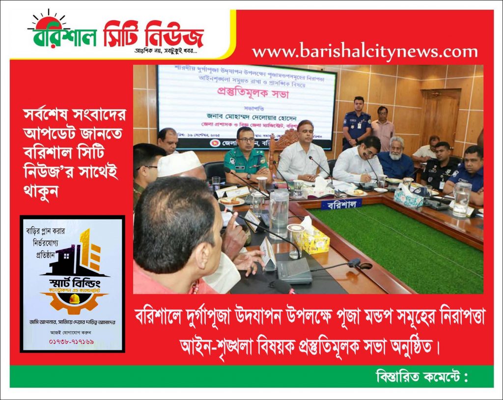 বরিশাল জেলায় ৬৪০ টি ও ৪৭ টি বরিশাল মহানগর পূজা মন্ডপে পূজা অনুষ্ঠিত হবে। জিয়াউদ্দিন বাবু >> বরিশালের জেলা প্রশাসকের এর সম্মেলন কক্ষে শারদীয় দুর্গাপূজা উদযাপন উপলক্ষে পূজা মন্ডপ সমূহের নিরাপত্তা আইন-শৃঙ্খলা সমুন্নত রাখা ও প্রাসদিক বিষয় প্রস্তুতিমূলক সভা অনুষ্ঠিত হয়। আজ মঙ্গলবার ১৬ সেপ্টেম্বর দুপুরে এতে সভাপতিত্ব করেন বরিশালের জেলা প্রশাসক মোহাম্মদ দেলোয়ার হোসেন। […]