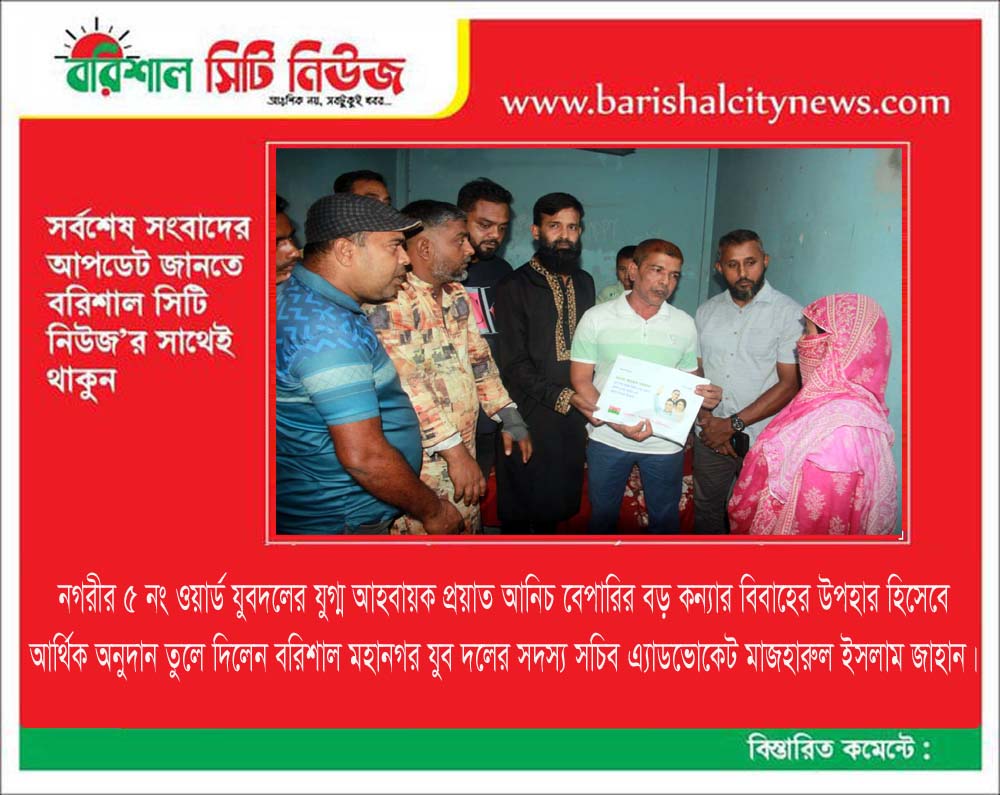 বরিশালে নিহত নেতার কন্যার বিয়েতে মানবিক দৃষ্টান্ত দেখালেন যুবদল নেতা এ্যাড. জাহান