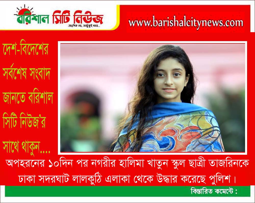 সিটি নিউজ ডেস্ক ।। অপহরনের ১০ দিন পর ঢাকা সদর ঘাট লালকুঠি এলাকা থেকে বরিশাল নগরীর হালিমা খাতুন বালিকা মাধ্যমিক বিদ্যালয়ের ৯ম শ্রেনির শিক্ষার্থী তাজরিনকে উদ্ধার করেছে পুলিশ। গত ২৯ জুন ঢাকা ডেমরা থেকে নিখোঁজ হওয়ার পর পরিবারের পক্ষ থেকে সুত্রাপুর থানায় সাধারন ডায়রী করা হয় বলে জানিয়েছেন মেয়ের ফুপাতো ভাই আমিনুল মৃধা। পরে বিভিন্ন […]