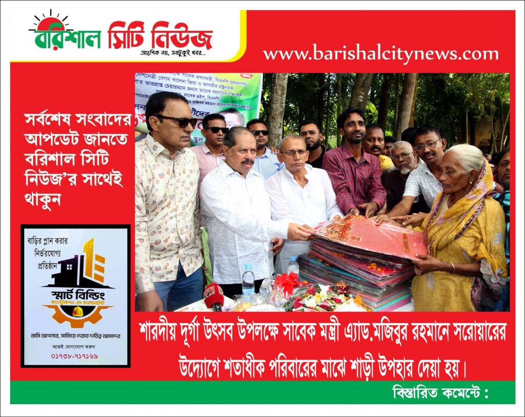 নিজস্ব প্রতিবেদক >> বরিশাল পাঁচ আসনের চার বারের সংসদ সদস্য, বরিশাল সিটি মেয়র, জাতীয় সংসদের সাবেক হুইফ, বরিশালের দায়িত্বপ্রাপ্ত সাবেক মন্ত্রী, বাংলাদেশ জাতীয়তাবাদী দল – বিএনপির চেয়ারপার্সনের উপদেষ্টা এ্যাডভোকেট মজিবুর রহমান সরোয়ার নিজ উদ্যোগে দুর্গা পুজা উপলক্ষে নগরীর বিভিন্ন ওয়ার্ড এর সনাতনধর্মালম্ভীদের মাঝে শাড়ী উপহার দেয়া হয়। রবিবার ২৮ সেপ্টেম্বর দুপুরে নগরীর মথুরানাথ পাবলিক স্কুল […]
