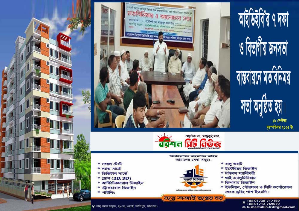সিটি নিউজ ডেস্ক ।। বরিশাল জেলা আইডিইবি’র উদ্যোগে ৭ দফা দাবি ও বিভাগীয় জনসভা বাস্তবায়নের লক্ষে ডিপ্লোমা ইঞ্জিনিয়ারিং বরিশাল জেলা সকল সরকারি বে-সরকারি সার্ভিস অ্যাসোসিয়েশনের প্রতিনিধিদের সাথে মতবিনিময় সভা অনুষ্ঠিত হয়েছে। আজ ১৮ সেপ্টম্বর বৃহস্পতিবার সন্ধায় নিজস্ব কার্যলয়ে সংগঠনের সভাপতি ইঞ্জিনিয়ার মাহফুজুল আলম মিঠুর সভাপতিত্বে এই মতবিনিময় সভা অনুষ্ঠিত হয়। সভায় উপস্থিত ছিলেন বাংলাদেশ ডিপ্লোমা […]